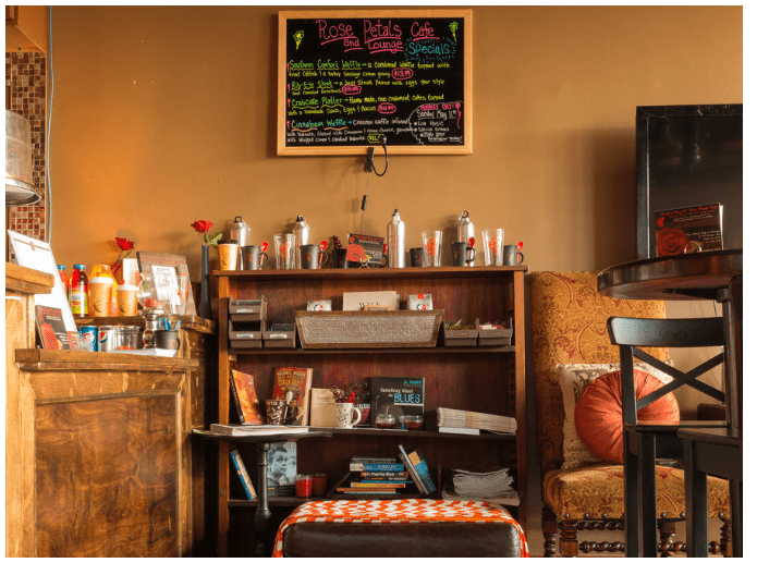Staff: The staff at Rose Petals Café and Lounge were amazing, they worked cohesively and efficiently while not compromising customer service and personable greetings of each and every customer that walked through the door. Genuine and easy flowing conversation with every patron new and old completely enhanced the space and made it more than a café, it could have easily been a dining room filled with extended family.